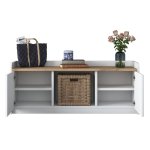 Náš botník je vyroben ze 100% melaminem potažené dřevotřískové desky a vydrží dlouho. Její jednobarevné provedení a moderní design dodají každé místnosti nádech elegance a zároveň poskytnou dostatek úložného prostoru pro vaše boty. Kombinace bílé a ořechové barvy vytváří vizuálně přitažlivý kontrast, díky němuž se stane skutečnou novinkou v interiéru vašeho domova.