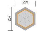 Šestihranný altán s podlahou z masivního dřeva o tloušťce 19 mm a střechou z masivního dřeva o tloušťce 14 mm nabízí dostatek prostoru pro odpočinek nebo venkovní stolování s rodinou a přáteli. Maximální zatížení střechy 75 kg/m2. Součástí altánu není střešní krytina (plocha střechy je 7,2 m2), lze zakoupit samostatné střešní šindele. Podlaha domku je postavena na dřěvěných trámech (4 x 4 cm), díky tomu nedochází k degradaci (vlhkosti) a zvýší se tak její životnost.