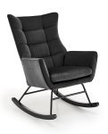 Křeslo je vyrobeno z kvalitních materiálů, které zaručují jeho dlouhodobou odolnost a snadnou údržbu. Černá práškově lakovaná houpací podnož nejen zajišťuje stabilní a bezpečné houpání, ale také podtrhuje industriální charakter křesla. Tento designový prvek propůjčuje křeslu jedinečný vzhled, který se snadno stane centrálním bodem jakéhokoliv místnosti. Sametová látka Velvet je příjemná na dotek a zároveň odolná, což usnadňuje čištění a zachovává vzhled křesla čistý a atraktivní po dlouhou dobu.