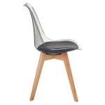 Nádherná kombinace plastu, ekokůže a dřeva. Pevné dřevěné nohy v odstínu buk jsou efektně propojeny s pohodlným plastovým sedátkem, který navazuje na pohodlné plastové opěradlo. Abyste se při sezení cítili maximálně komfortně, sedací část čalouněná ekokůží je vyplněna vložkou, čímž je zajištěno extra měkké sezení.