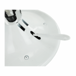 Moderní design násobí i obruč na konstrukci, která zvyšuje stabilitu stoličky. Páka pod sedadlem vám napoví, že stolička je výškově nastavitelná.