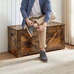 S rozměry 40 x 100 x 46 cm vám tato velká úložná truhla s víkem nabízí spoustu úložného prostoru pro skrytí dek, polštářů, oblečení a knih. Dva robustní panty umožňují, aby víko zůstalo stabilně otevřené v úhlu 60° nebo menším a zavřelo se, když zbývá pouze 5 cm místa, takže si nepřiskřípnete prsty! Horní deska unese až 100 kg, takže si můžete na lavici sednout, přezouvat se s klidem a uložit spoustu věcí do skryté přihrádky.