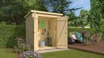 Při výrobě bylo použito kvalitní přírodní smrkové dřevo. Pro ochranu před povětrnostními vlivy lze povrch natřít lakem nebo lazurou. S tímto funkčním zahradním domkem si uspořádáte vše potřebné. Jedná se o domek s menší tloušťkou stěny 13 mm a 15 mm šikmou střechou. Dřevo pochazí z udržitelného lesnictví (certifikáty PEFC a FSC). Maximální zatížení střechy 50 kg/m2.