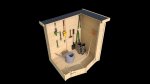 Domek je doplněn dvojitými dveřmi, které umožňují uskladnění i větších předmětů, nástrojů či zahradní techniky. Součástí domku není střešní krytina, lze zakoupit samostatné střešní šindele. Podlaha domku je postavena na dřěvěných trámech (4,5 x 4,5 cm), díky tomu nedochází k degradaci (vlhkosti) a zvýší se tak její životnost.
