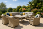 Tato sedací souprava nabízí vyjímečný komfort pro až 11 osob, což ji činí ideální volbou pro zahradní večírky nebo rodinné sešlosti. Skládá se z rohového sedadla pro 7 osob a čtyř samostatných křesel, což zaručuje dostatek prostoru pro každého.